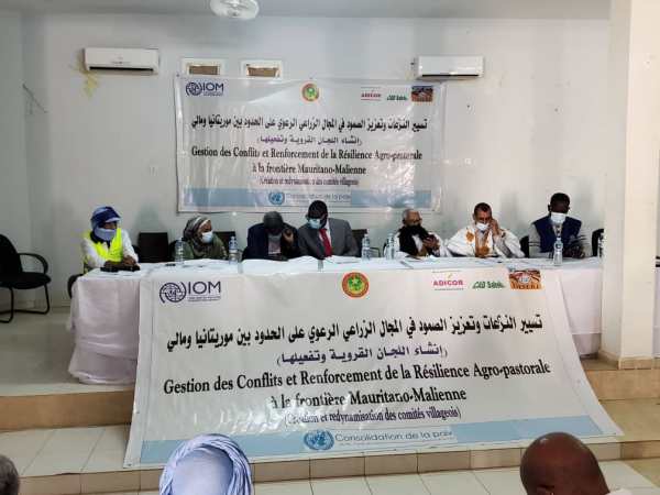 Sous le haut patronage du Wali du Hodh El gharbi, et en présence du Président de la Région, de la Directrice des Frontières ainsi que le Hakem de la Moughataa et du Maire, s’est tenu à Aioun du 30 novembre au 2 décembre , l’atelier de lancement du projet Gestion des Conflits et Renforcement de la Résilience Agro-pastorale à la frontière Mauritano-Malienne financé par le Fonds des Nations Unies pour la Consolidation de Paix – PBF- à travers l’Organisation Internationale des Migrations – OIM-