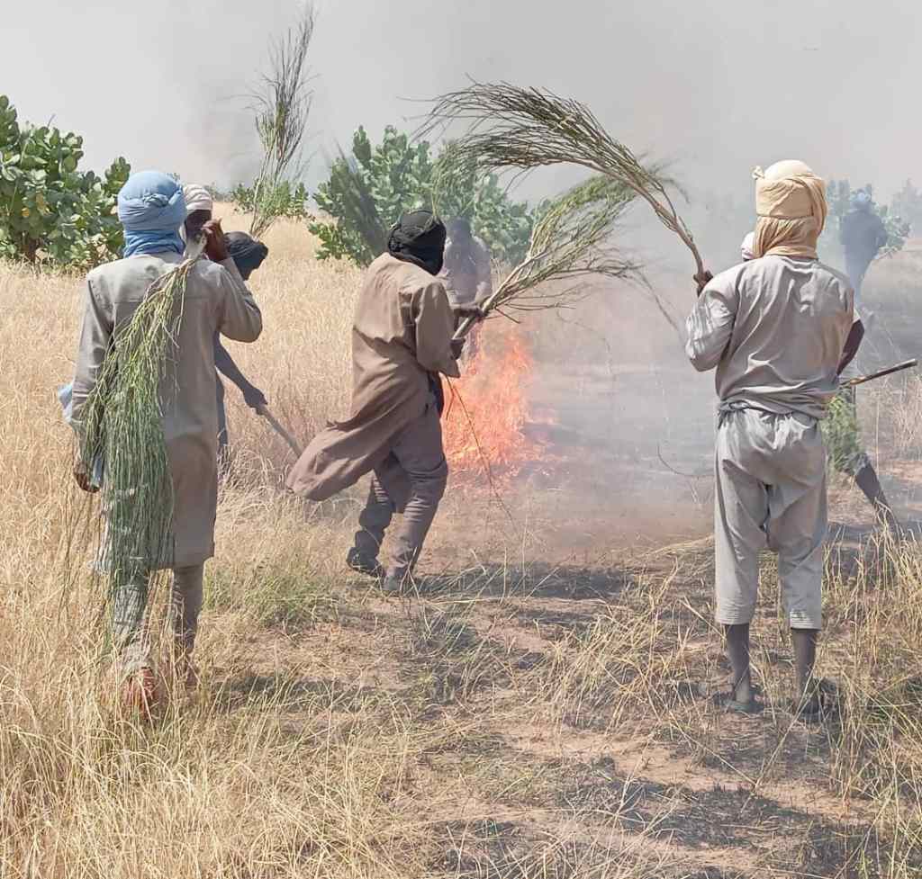 Engagement permanent de SOSDESERT pour la protection de l’environnement : pilotage de la lutte contre les feux de brousse au nom de l’État et de ses partenaires des Nations Unies.